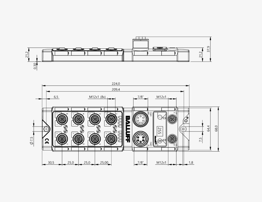 | Connection slots | 8x M12x1-Female, 5-pin, A-coded |